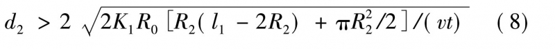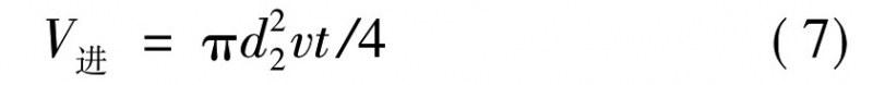 在管材成形過程中,液壓腔中的液體應(yīng)能有效地補給到管材脹形區(qū)內(nèi),否者管材因得不到充分的脹形而影響成形質(zhì)量。在管材沖擊液壓成形中,在軸壓頭受到撞擊時到管材脹形成形結(jié)束這段時間t內(nèi),軸壓頭中通孔允許液壓腔中液體進入管材內(nèi)腔的最大的體積量V進應(yīng)大于管材塑性變形后管材內(nèi)腔體積的變化量,即: