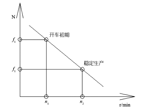 切刀軸前進推力與切刀轉(zhuǎn)速的關系圖對于切粒機的操作十分重要。如何獲得上述關系圖,一般來說,設備出廠時,設備制造商會提供一個切刀前進力與刀軸轉(zhuǎn)速的曲線圖,但在機組現(xiàn)場安裝及調(diào)試時,會采集現(xiàn)場機組運行數(shù)據(jù),對曲線圖進行確認或修訂。如切刀軸前進力f1可自動控制,可將本曲線寫入PLC或DCS中,以便實現(xiàn)切刀軸前進壓力的自動給定。設備使用方可根據(jù)現(xiàn)場實際操作人員的經(jīng)驗及收集的數(shù)據(jù)對本曲線進行修訂,達到最優(yōu)效果,從而減少切刀、模板的磨損,延長切刀、模板的使用壽命,使機組穩(wěn)定長周期運行。