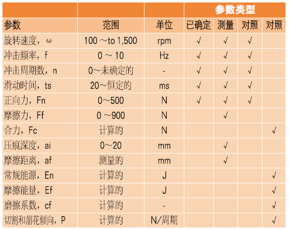 表2、儀表化的切割和崩花分析儀(ICCA)的參數(shù)列表
